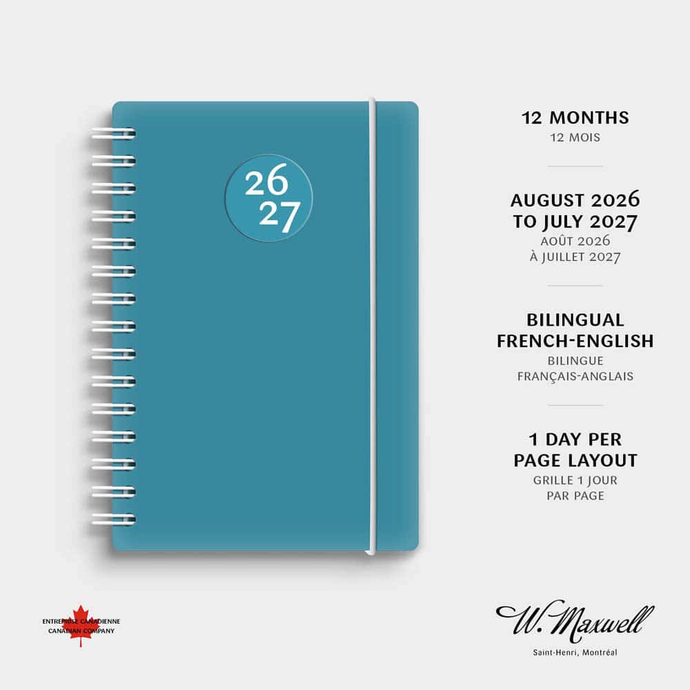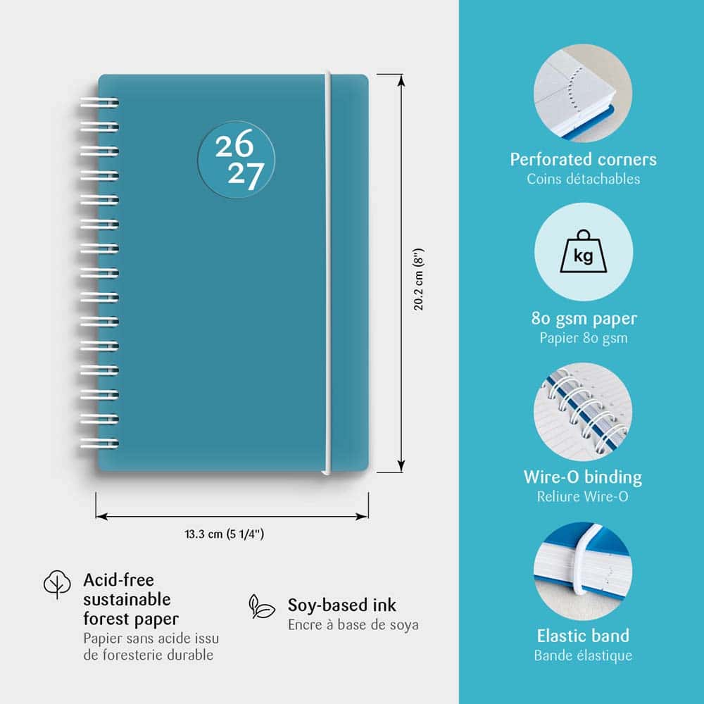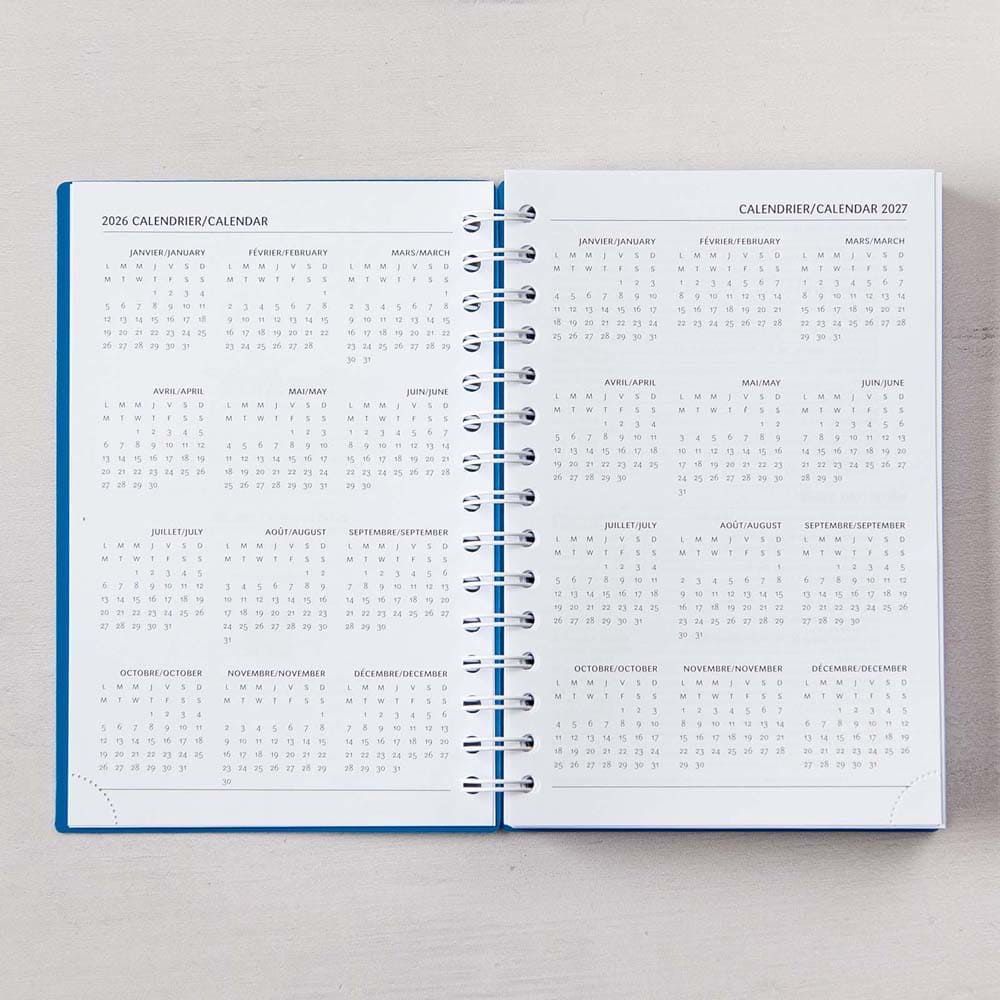 The Euro can follow you everywhere and can be used anywhere thanks to its resistant hardcover. It offers ample space to write with its 1-day-per-page layout and 14 pages for notes. Each day can be personalized thanks to the blank box at the bottom of the page: it can be filled by your lists, drawings, stickers or anything you like.