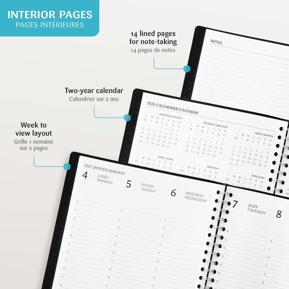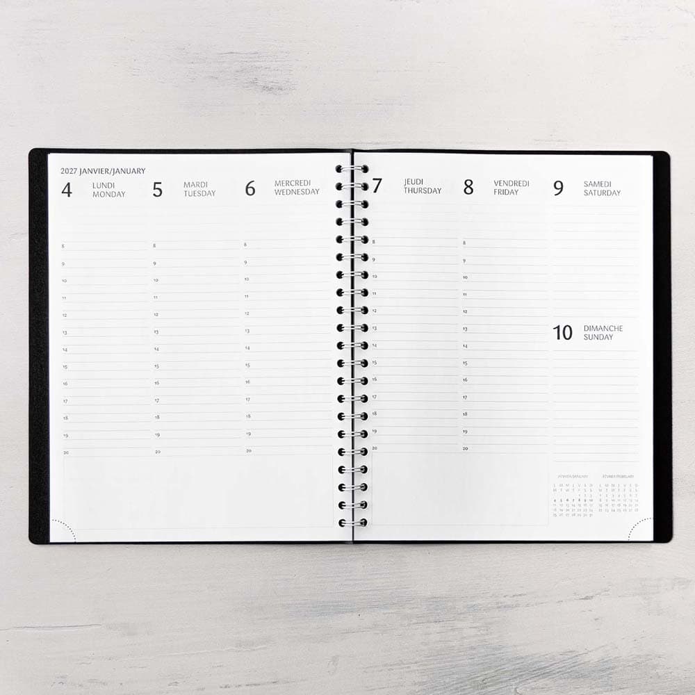 The Maxi, with its flexible cover made from paper, its week-to-view layout and its 14 pages for notes, has been a versatile and effective planning tool for many years. The week’s plan is always under the eye, as well as the lists or notes that can be written in the box provided on each page. It opens at 360 degrees and is completely recyclable.
