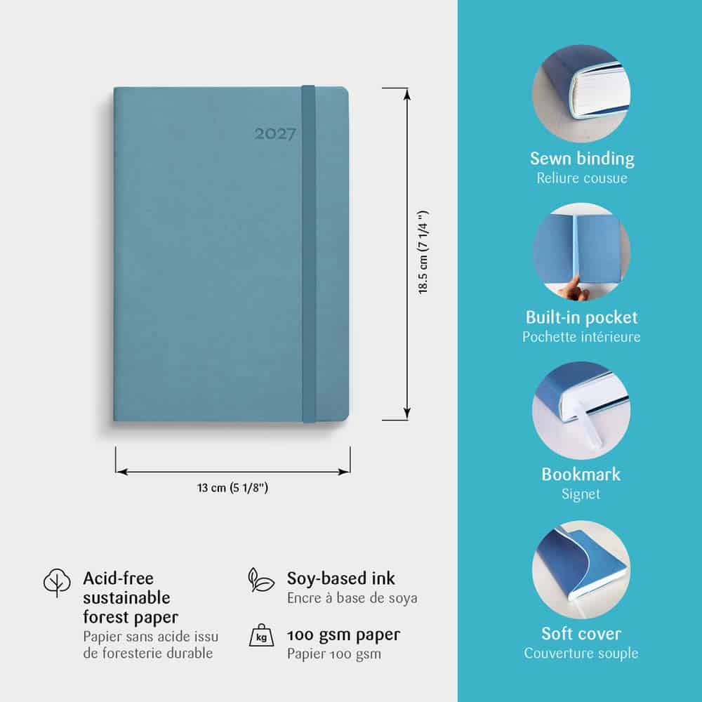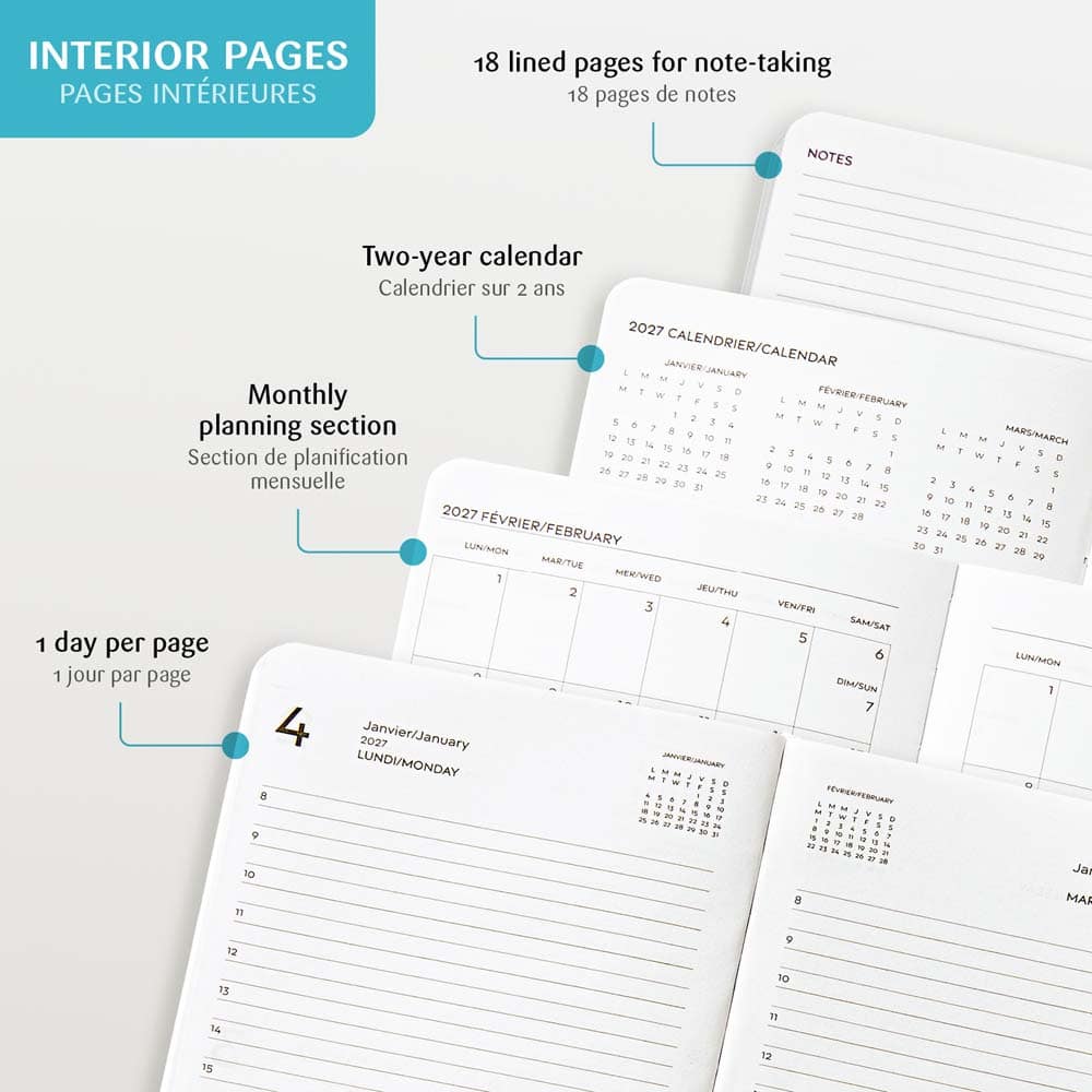 Le nouvel agenda Bergman est là, un modèle pensé pour ceux qui recherchent un équilibre parfait entre espace d’écriture et format compact. Il offre une grille de 1 jour par page, avec une grande liberté de personnalisation: 18 pages de notes, une section libre au bas de chaque page, ainsi qu’une pochette de rangement intérieure pour organiser tous vos petits documents. Il comprend trois sections de planification : annuelle, mensuelle et quotidienne ainsi que deux signets pour suivre toutes vos activités sans jamais perdre le fil. Sa mise en page est épurée et sa couverture aux motifs raffinés est flexible.