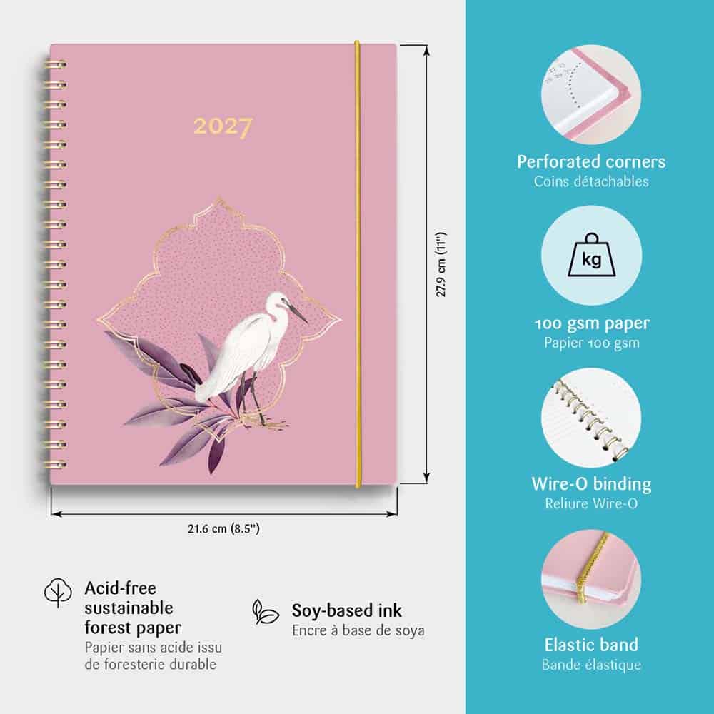 Le Kibo est très populaire parmi la population étudiante. Sa fonctionnalité a fait ses preuves. De grandes pages format lettre, la semaine bien en vue avec sa grille de 1 semaine sur 2 pages et un encadré spacieux sur chaque page pour noter tout ce qui vous passe par la tête. Il inclut aussi 14 pages de notes. La reliure spirale permet de l’ouvrir à 360 degrés et d’écrire partout où vous vous trouvez. Il est facile d’être toujours à la bonne page grâce à ses coins détachables.